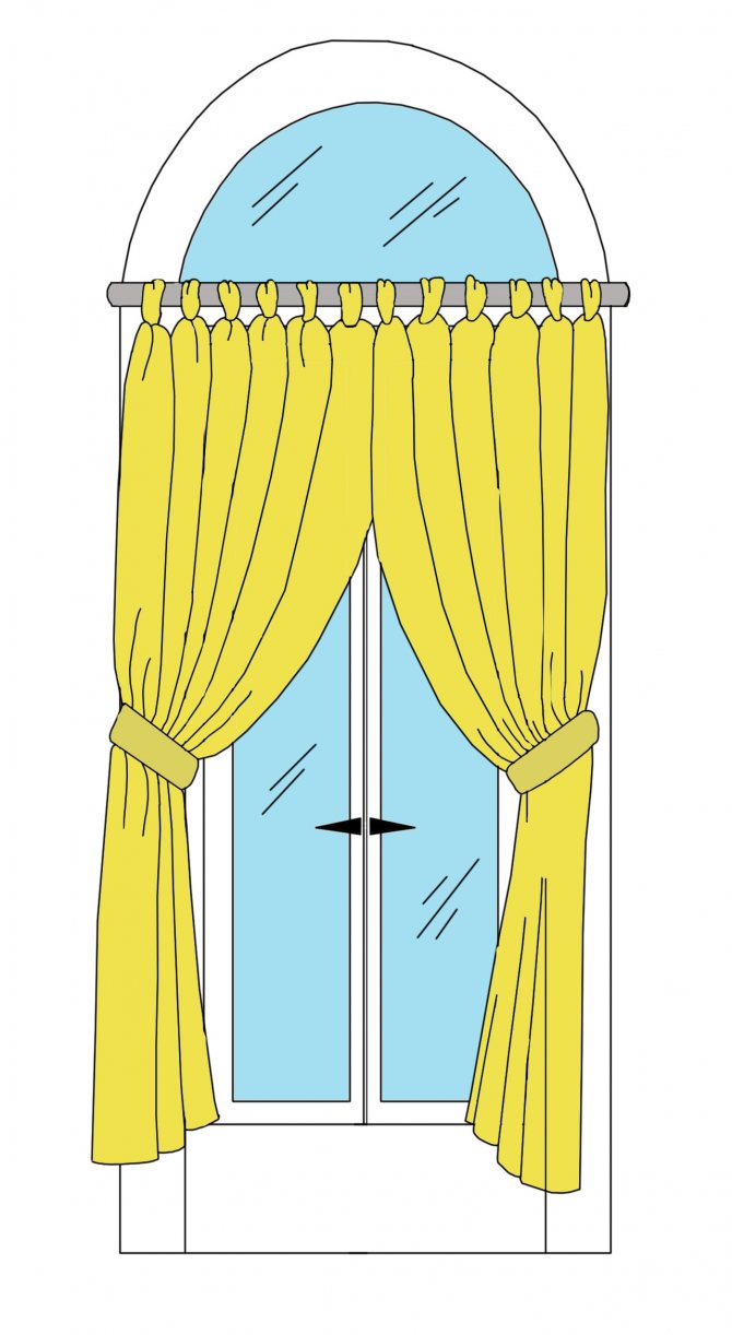 Il faut se rappeler que les rideaux ne seront soulevés que jusqu'à la ligne du début de l'arc. Une partie des rideaux recouvrant la voûte ne sera qu'un décor, de plus, un décor recouvrant la lucarne. Par conséquent, lorsque vous choisissez des tissus pour soulever des rideaux, vous devez garder cela à l'esprit.