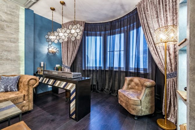 - Des rideaux. Ils deviendront une solution gagnant-gagnant pour n'importe quelle baie vitrée et en feront sans aucun doute l'objet principal de toute la pièce.