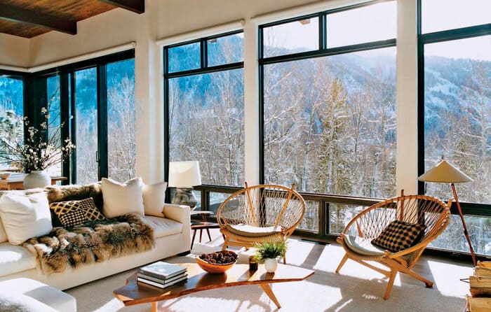 - Une fenêtre à double vitrage à plusieurs chambres est la meilleure option pour aménager une entrée dans un chalet.
