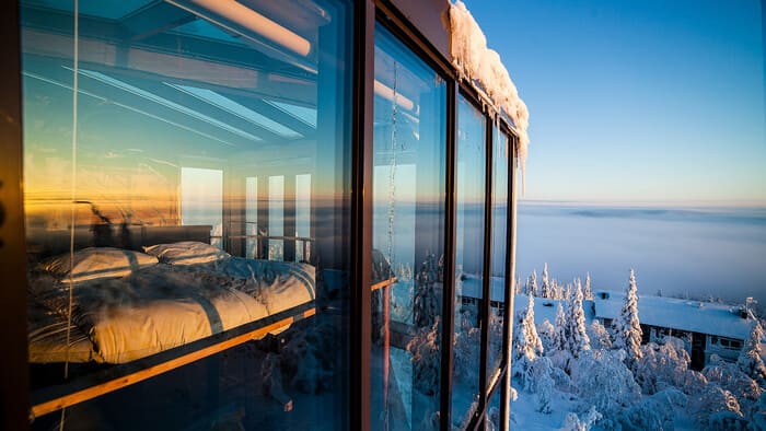 Maison en bois avec murs de verre