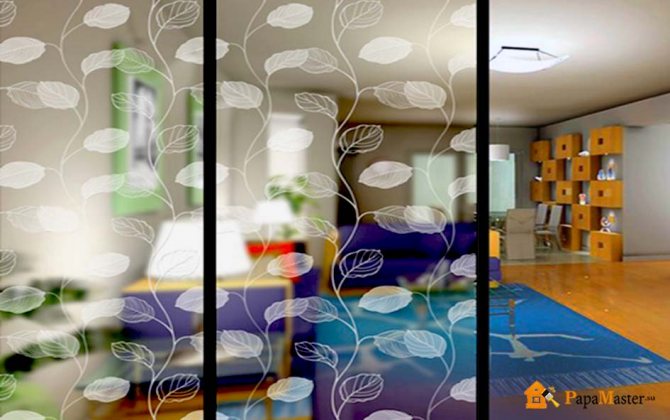 - Une large gamme de textures et de transmission de la lumière. Vous pouvez appliquer des films d'art, des aérographes de toute complexité sur du verre. La stalinite avec une teinte mate obscurcit non seulement la vue de l'extérieur, mais a également une résistance accrue.