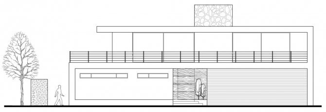 La façade du manoir est en verre, c'est-à-dire que les premier et deuxième étages sont complètement ouverts à la pénétration de la lumière du soleil, ce qui crée la légèreté de la structure en béton. Les parties latérales du mur et du toit sont en béton thermique. Au niveau supérieur, il y a une terrasse extérieure, qui est clôturée avec des balustrades métalliques.