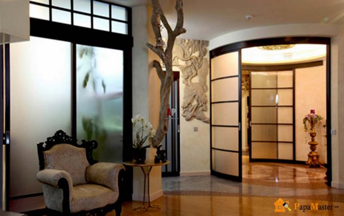 - Troisièmement, ces éléments sont parfaitement combinés avec tous les autres éléments de l'intérieur - il n'y a pas de revêtement de sol ou de mur qu'un mur de verre ne conviendrait pas.