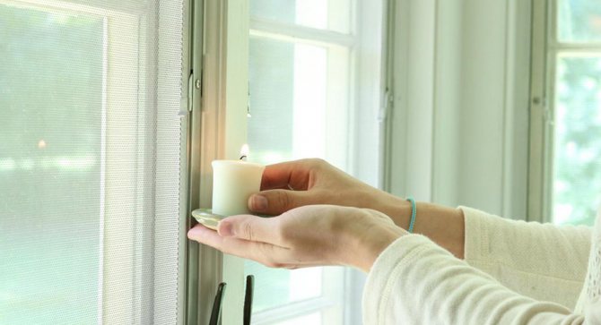 S'il n'y a pas de caméra thermique dans la maison et que vous ne pouvez pas trouver l'endroit problématique d'un coup d'œil, vous pouvez prendre une bougie ordinaire (ou un briquet) et, lorsqu'elle est allumée, la déplacer près de la fenêtre. À l'endroit où elle souffle d'une fenêtre en plastique, la flamme clignotera ou s'éteindra.