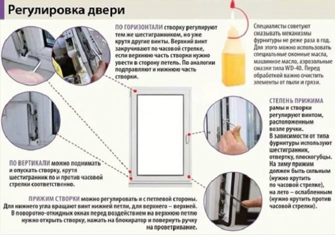 Dans la plupart des cas, il est nécessaire d'ajuster les fenêtres en plastique pour la nouvelle saison: en hiver, une densité complète est souhaitable et en été, vous pouvez laisser entrer un peu d'air frais. Ceci est obtenu en ajustant la densité de maintien du vantail. C'est facile de le faire vous-même. Lorsque vous le comprendrez, soyez étonné de voir à quel point tout est trivial et