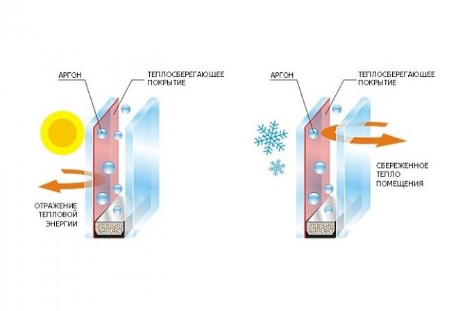 Le verre I à économie d'énergie est produit par une méthode «douce» et recouvert d'une fine couche d'argent, presque invisible à l'œil humain. Il s'appelle un miroir thermique et est placé à l'intérieur d'une unité de verre pour protéger le revêtement de la poussière et de l'humidité. Cela vous permet de garder la maison au chaud en hiver et au frais en été.