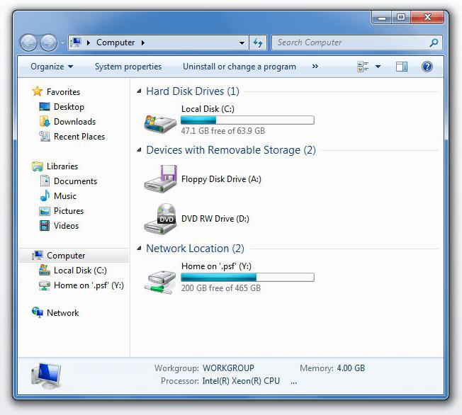 Donc, si nous avons une fenêtre devant nous, quel que soit le système d'exploitation, nous pouvons voir un certain nombre d'éléments. Vous pouvez mettre en surbrillance le contenu de la fenêtre. Si, par exemple, prenez la fenêtre "Poste de travail", alors le contenu sera des disques, des dossiers, le répertoire sur le côté et la barre d'outils.