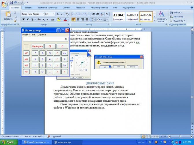 - Fenêtres du programme ou en d'autres termes - des fenêtres d'application. Tout programme a une fenêtre principale à travers laquelle l'interaction avec l'utilisateur a lieu. En plus de la fenêtre principale, les applications peuvent ouvrir des fenêtres secondaires subordonnées à la fenêtre principale.