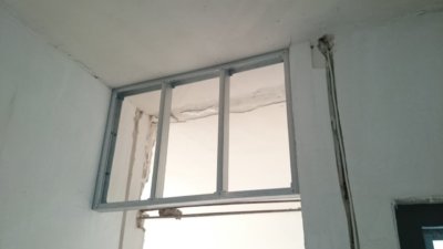 Le verre existant est découpé et des charnières sont accrochées au profil existant pour ouvrir une partie du verre. Ils agissent plutôt comme une mesure forcée et un compromis.