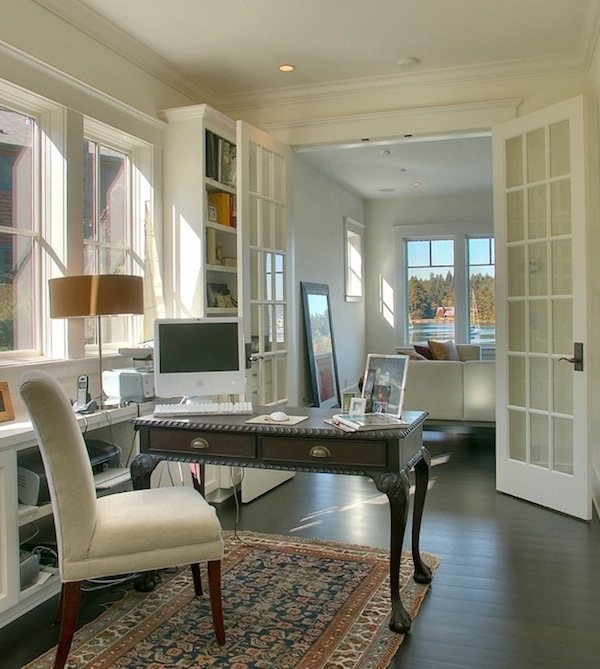 Il existe différentes manières de diviser l'espace. L'un d'eux peut être précisément la porte française. Un tel «écran» transparent servira d'excellent séparateur visuel, par exemple entre un bureau et une chambre, il vous permettra d'être dans deux pièces en même temps, bien que physiquement vous ne serez que dans une seule pièce. Et qui a dit qu'il n'y avait pas de miracles?