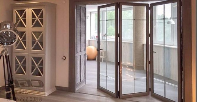 - portes accordéon (réalisées non seulement pour les loggias et les balcons, mais aussi pour les terrasses ou vérandas).