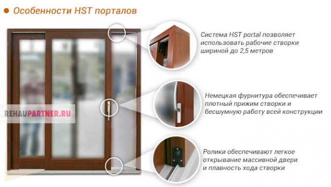 Les conceptions de levage et de glissement ont un mécanisme spécial pour soulever les châssis et les guider sur le côté. Il s'avère une telle image quand une ceinture, pour ainsi dire, passe derrière l'autre. Ces portes conviennent même aux portes très larges. En hiver, ils ne sont pas moins pertinents que les autres modèles, car ils sont collés avec un joint hermétique spécial. Les produits de ce type fourniront une excellente isolation phonique et phonique.