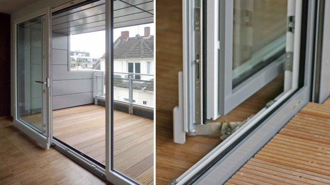 Les portes-fenêtres peuvent avoir des volets coulissants (séparés sur les côtés) ou shtulpovye qui s'ouvrent vers l'extérieur ou vers l'intérieur. La caractéristique de conception des fenêtres shtulp est l'absence d'imposte (profil vertical entre les ouvrants).