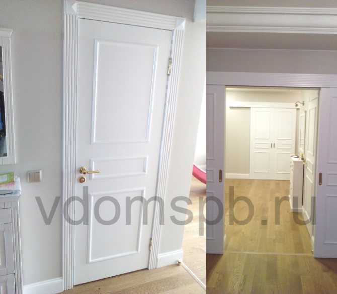 - "Tout inclus". Lors de l'achat de portes, rappelez-vous que la porte, en règle générale, est vendue complète avec un cadre, un seuil, des garnitures et des accessoires.