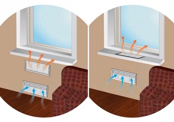 Dans de telles situations, des trous sont percés dans le rebord de la fenêtre, sur lesquels des grilles en plastique équipées de stores sont installées. Avec leur aide, vous pouvez réguler le flux d'air chaud et le diriger vers la fenêtre. Vous pouvez généralement acheter ces grilles dans n'importe quelle quincaillerie.