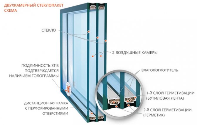 Le simple vitrage n'est généralement pas autorisé pour les pièces chauffées. L'isolation thermique des fenêtres est augmentée à l'aide de deux à trois feuilles de verre avec des entrefers de 6 à 20 (mm). L'air qui remplit l'espace entre les vitres sert de bon isolant thermique.