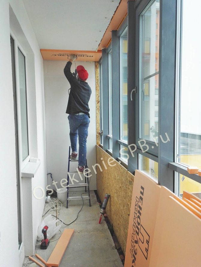 - Après cela, vous pouvez couper la loggia. Pour cela, une doublure ou une cloison sèche est le plus souvent utilisée. Ces matériaux amélioreront également l'isolation thermique.
