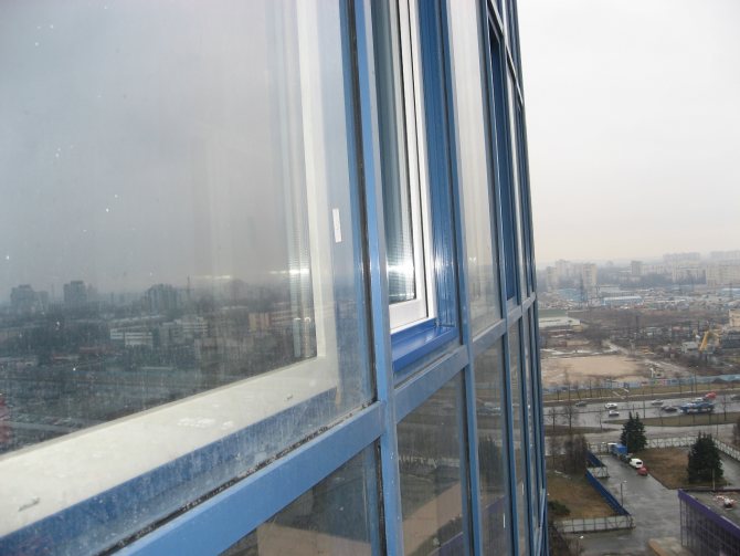 Il est caché par des fenêtres en plastique et des garnitures décoratives. Et de l'extérieur, l'aspect d'origine du bâtiment est préservé, car le cadre en aluminium n'a pas été démonté et les fenêtres en plastique peuvent être assorties au verre de toute la façade.