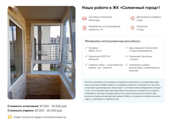 - la possibilité d'obtenir des conseils d'experts complets sur les possibilités et les méthodes d'isolation d'un balcon avec un vitrage à froid.