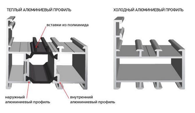 - installation d'un pont thermique - un matériau isolant thermique spécial en polyamide, qui est posé entre les profilés extérieur et intérieur du cadre en aluminium. Cette méthode ne donne pas de résultats tangibles;