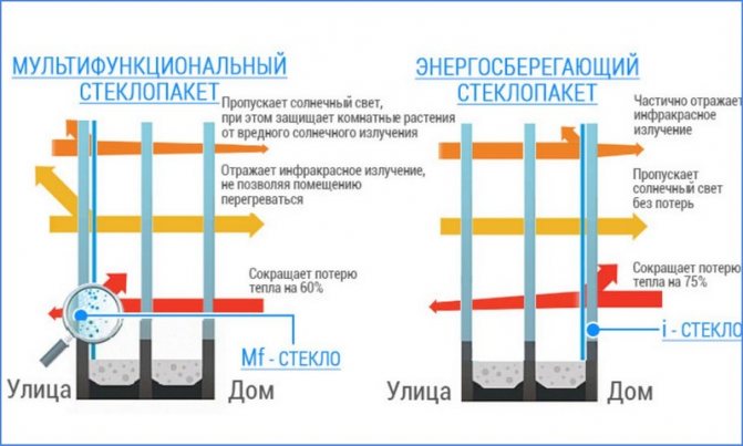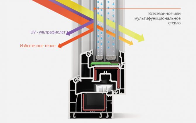 Les fenêtres à double vitrage avec verre multifonctionnel fonctionnent comme un miroir thermique et le reflet va dans les deux sens : l'énergie thermique de la pièce est réfléchie vers l'intérieur et les rayons du soleil, au contraire, sont repoussés du verre vers la rue.