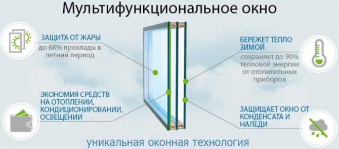 Le prix quelque peu élevé du verre multifonctionnel sera entièrement amorti en seulement 3 ans de fonctionnement grâce aux économies d'énergie. Dans une pièce dans laquelle des fenêtres d'un tel plan sont installées, la consommation d'énergie est réduite plusieurs fois.