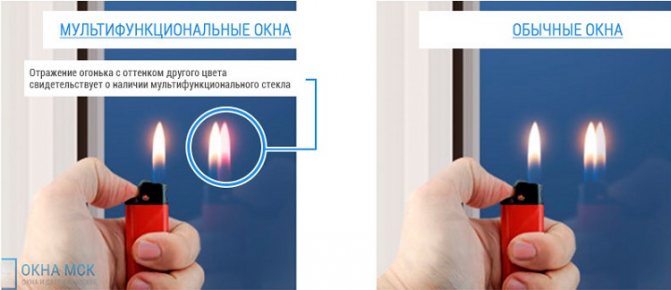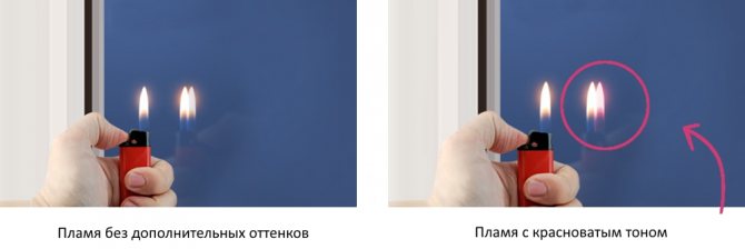Apportez le feu à l'unité de verre. Chaque verre aura son propre reflet, composé de deux flammes. Dans une unité de verre ordinaire, tous les reflets sont de la même couleur. Pour un vitrage avec du verre à faible émissivité, la surface du verre à économie d'énergie avec pulvérisation donnera un reflet d'une couleur différente.