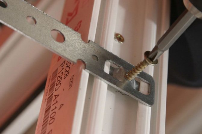 - Le renforcement final de la fenêtre dans l'ouverture se fait à l'aide de plaques de montage. Les attaches se fixent tour à tour, d'abord sur la structure de la fenêtre, puis sur les parois de l'ouverture. Pour faire mousser le cadre, veillez à laisser des fentes uniformes autour du périmètre de la fenêtre d'au moins 2 cm.