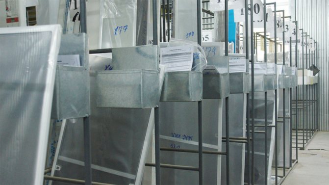 Tous les éléments de la fenêtre sont marqués - ils sont marqués avec des informations sur la taille et le client. Un affichage spécial reçoit des données pour l'opérateur, l'informant de la séquence de mouvement des pièces et de leurs tailles. Sur les photos, vous pouvez voir des autocollants avec des informations collés sur les produits, ainsi que la séquence de pose des éléments pour leur distribution ultérieure.