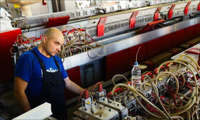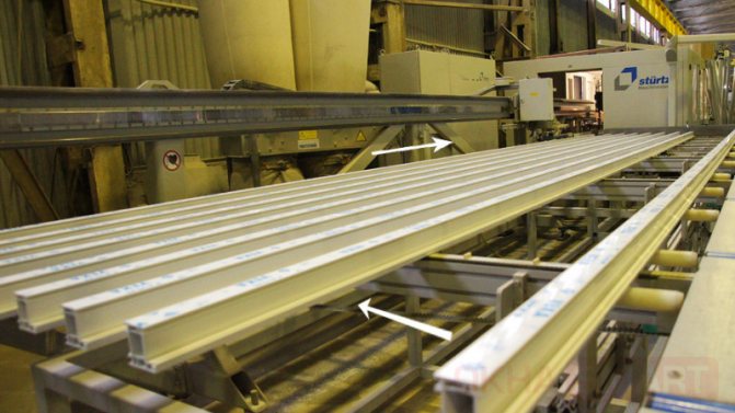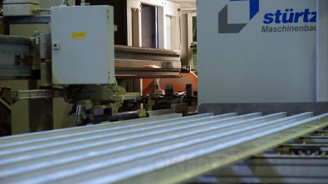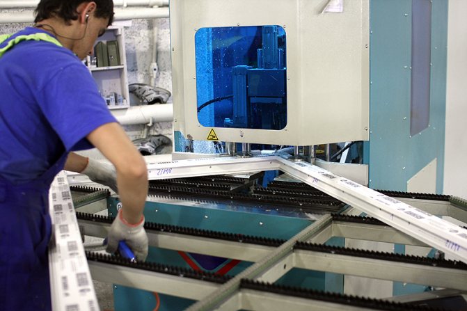 La découpe du profilé fini en ébauches de la longueur requise et l'installation d'un profilé en acier dans celui-ci à l'usine sont presque entièrement automatisées.