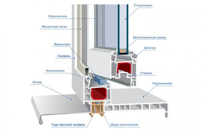 En parlant de la structure des fenêtres en plastique, il est important de souligner qu'il n'y a pas beaucoup de variété ici. Tous les fabricants utilisent le même principe. La composition comprend :
