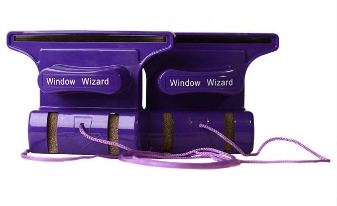 - Lave-vitre magnétique. Il est représenté par des brosses fixées de part et d'autre de la fenêtre, opposées l'une à l'autre. À un moment donné, il sera possible de laver à la fois les parties intérieures et extérieures de l'unité de verre.