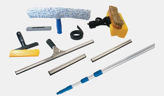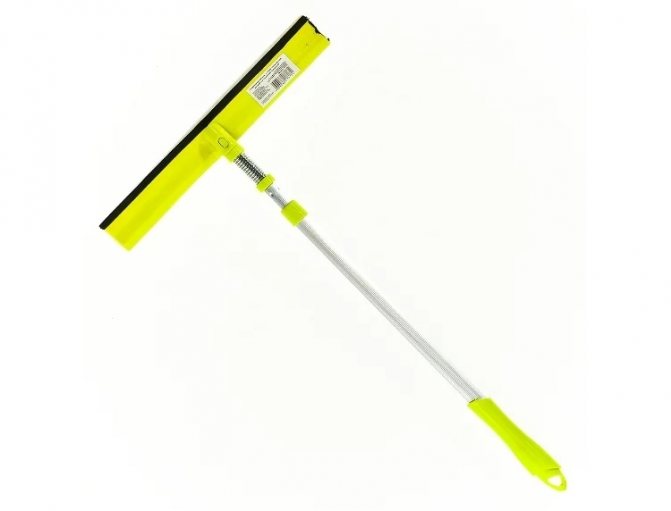 Coupleur avec poignée courte, sans fixation. Il est utilisé pour éliminer l'eau après avoir lavé la fenêtre avec un chiffon ou une éponge ordinaire.- Serre-câble télescopique avec manche long et buse en microfibre ou mousse. Il est rétractable, ce qui permet non seulement d'ajuster sa hauteur, mais également son inclinaison.