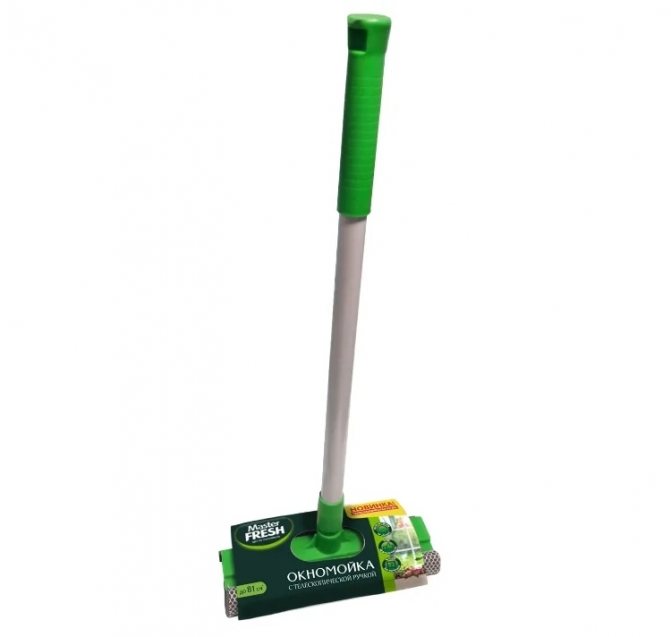 - Mop06-1 - la tête du produit est mobile, la poignée est longue, ce qui vous permet de nettoyer les fenêtres même dans les endroits les plus inaccessibles;