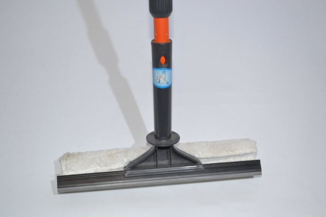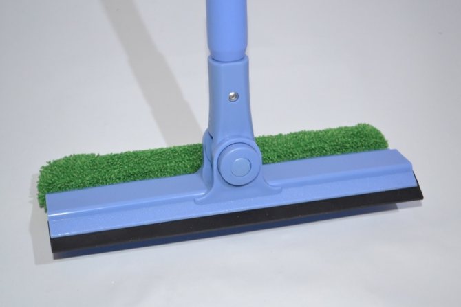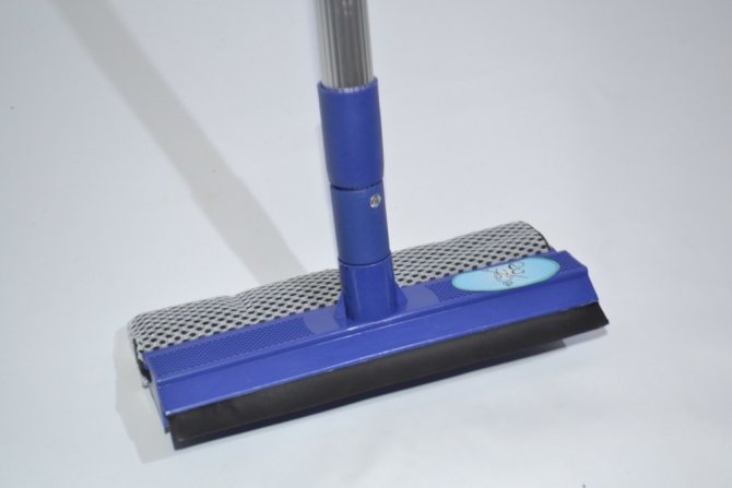 S'il est petit, vous pouvez utiliser une brosse classique avec un accessoire en caoutchouc. Il n'est pas nécessaire d'acheter un appareil avec une longue poignée. - Lors du choix d'une chape, vous devez faire attention à l'étanchéité de la fixation de la raclette en caoutchouc. Il ne doit pas chanceler ou s'éloigner. La bande élastique de haute qualité est élastique et résistante. Seul un tel nettoyant pour vitres peut éliminer complètement l'eau et la saleté.