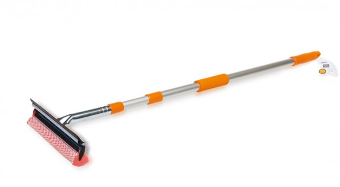 - Si les fenêtres sont grandes et panoramiques, vous devriez opter pour un lave-vitres avec une longue poignée télescopique. Souvent, ces dispositifs sont complétés par une éponge. La vadrouille rétractable est une excellente solution pour nettoyer les vitres avant.