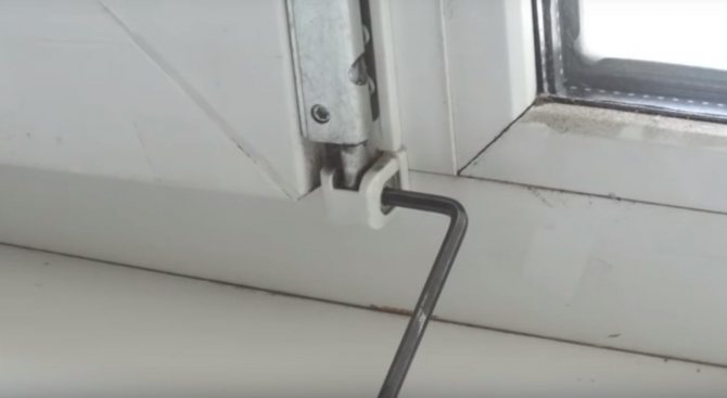 Pour changer la position de l'ouvrant avec un hexagone, serrez les boulons sur la verrière inférieure et sur le système "ciseaux" par le haut. Retirez le capuchon de protection en plastique de la charnière inférieure, et dans la partie supérieure de celle-ci, vous pouvez trouver un boulon hexagonal. Pour abaisser l'ouvrant, tournez-le dans le sens antihoraire et pour le relever, dans le sens horaire. Sur les portes et fenêtres massives en métal-plastique, il y a parfois des fermetures supplémentaires qui soulèvent légèrement le châssis avant de se fermer. S'il existe un tel mécanisme, il devra être légèrement corrigé.