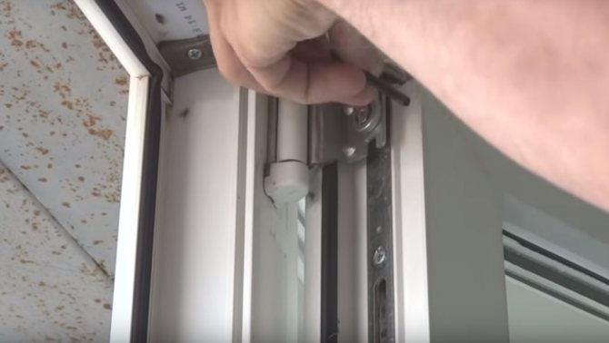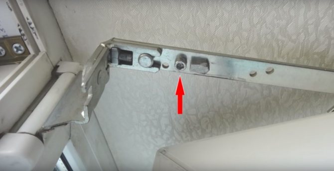 Les fuites peuvent également se situer au coin supérieur de l'ouvrant. Pour ce faire, vous devrez ajuster la charnière supérieure, où se trouve la vis sur le côté.