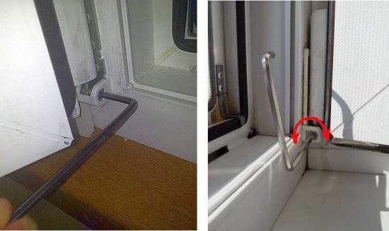 Si la pente est trop proche et ne permet pas d'accéder au boulon, le châssis est ouvert et a recours à la deuxième méthode. Si vous le tournez dans le sens des aiguilles d'une montre, l'ouvrant se déplacera vers la droite et dans le sens inverse des aiguilles d'une montre - vers la gauche.