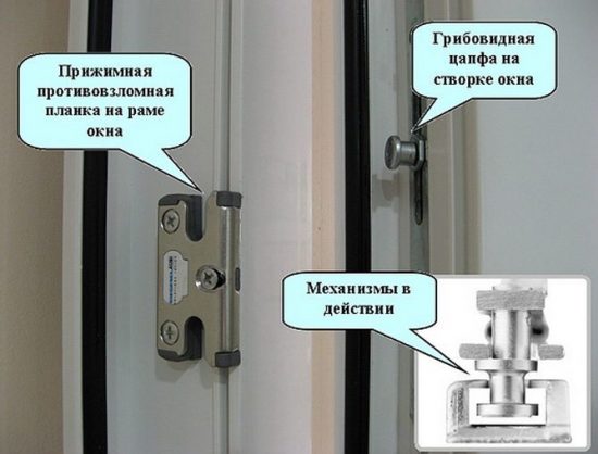 Dans la construction de fenêtres en plastique, un mécanisme de serrage est nécessairement installé. Son objectif principal est de résister à l'écrasement du châssis du côté de la rue. Autrement dit, ce sont des raccords anti-cambriolage. La rotation dans le sens des aiguilles d'une montre fournit une prise ferme grâce à la languette extensible.