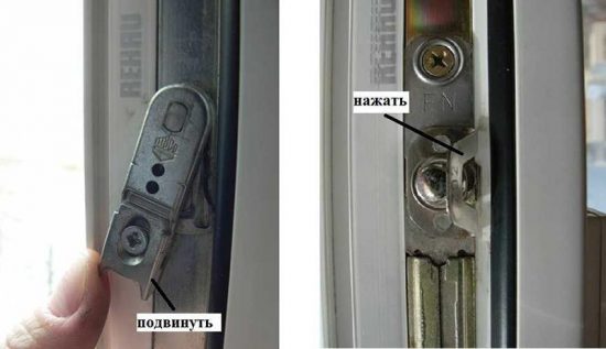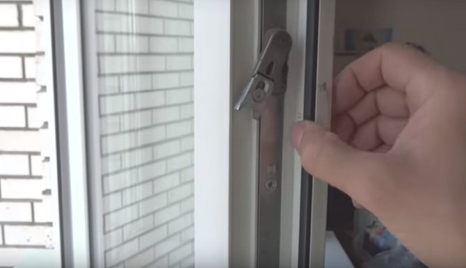 Si cela s'est produit et que la poignée est bloquée, vous ne pouvez pas la fermer de force en la cassant avec des abats. Très probablement, le mécanisme de verrouillage n'a pas fonctionné correctement, ce qui ne permet pas de changer la position de la fenêtre pendant l'état ouvert. Pour résoudre ce problème, tirez manuellement le levier de verrouillage situé à l'extrémité de l'ouvrant à côté de la poignée. Le bloqueur peut être de deux modèles: