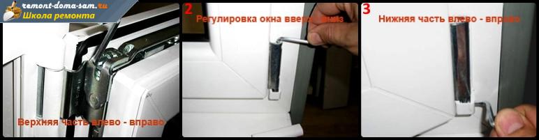Lorsque la fenêtre en plastique s'affaisse, le réglage est différent: vous devez déplacer l'ouvrant en gémissant afin que les saillies qui n'atteignent pas les plaques les attrapent.