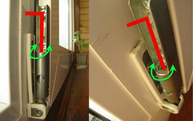 Parfois, les fenêtres en plastique, même après que les pivots sont déplacés en position de forte pression, ne sont pas étanches à l'air - souffler sous le châssis et remplacer l'élastique ne fait rien. Cela se produit généralement lorsque la maison rétrécit. Dans ce cas, ils disent que la fenêtre s'affaisse. Lorsque cela se produit, le contact entre la languette de verrouillage et la gâche est perdu. Lorsque vous tournez la poignée, la goupille de saillie doit aller derrière la plaque, en appuyant sur le rabat. Si cela ne se produit pas et que des courants d'air surviennent, la chaleur est évacuée de la pièce.