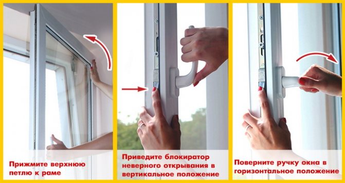 Vous devez d'abord décider lequel des tourillons n'atteint pas les plaques de gâche. Cela se fait mécaniquement. Tout d'abord, inspectez le châssis, rappelez-vous où il y a des saillies. Ferme la fenêtre. Saisissez le cadre du châssis aux points de pivotement et tirez-le vers vous.