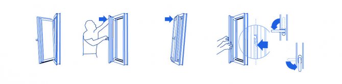 - Pour fermer le châssis, appuyez fermement contre le cadre de la fenêtre. La poignée de fermeture des fenêtres est tournée dans sa position d'origine.