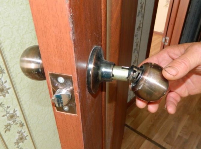 Parlons maintenant du démontage de la poignée à bouton rond. Pour démonter cet élément du vantail de porte, généralement les actions suivantes sont effectuées.