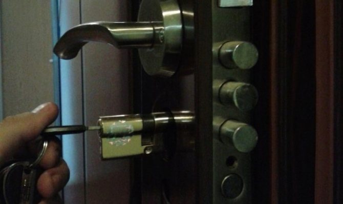 Une telle poignée peut être démontée à l'aide d'un tournevis à lame étroite. À propos, une telle poignée peut avoir une serrure avec un noyau métallique.
