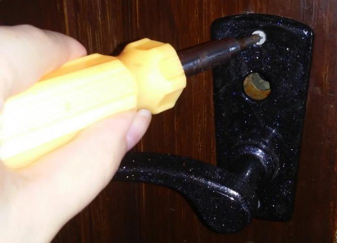 - Si la poignée est fixée sur des vis autotaraudeuses ordinaires, vous pouvez utiliser un tournevis. Après l'avoir supprimé, vous pouvez facilement comprendre pourquoi le dysfonctionnement est et s'il est possible de tout réparer;