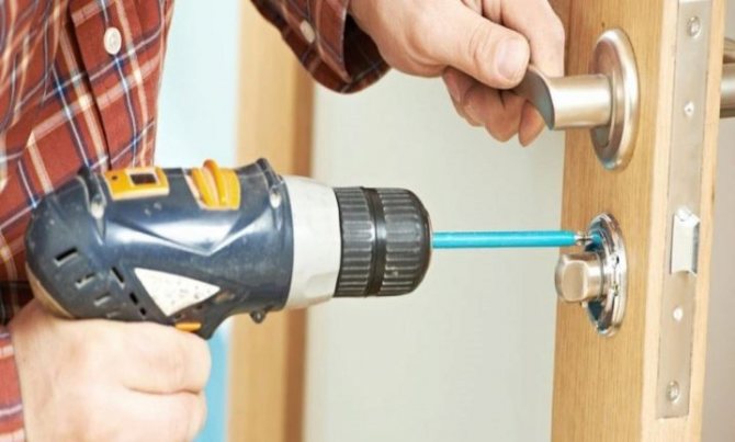 Tout d'abord, utilisez une perceuse pour percer un trou de 5 à 6 mm de diamètre. Ensuite, installez une couronne sur le foret dont le diamètre est égal au diamètre du trou pour le mécanisme interne de la poignée - en règle générale, cela est indiqué dans les instructions.