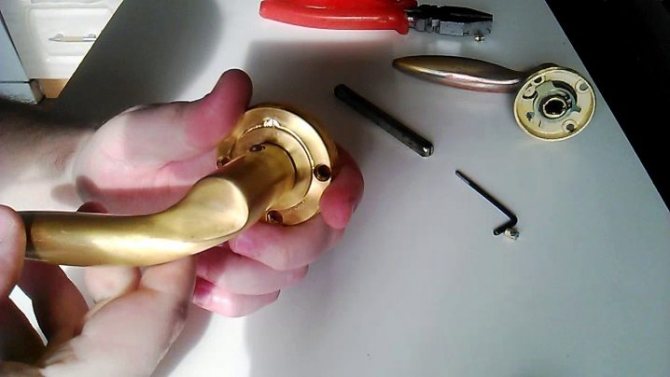 Si la poignée doit être réparée ou si une partie de celle-ci doit être remplacée, les éléments individuels doivent être complètement démontés et la cause du dysfonctionnement déterminée. Il est nécessaire de surveiller particulièrement attentivement la sécurité de tous les petits éléments structurels, sinon, s'ils sont perdus, il ne sera tout simplement pas possible de remonter le mécanisme.